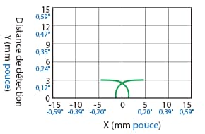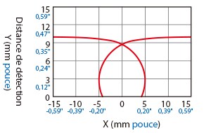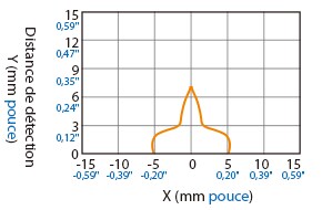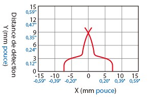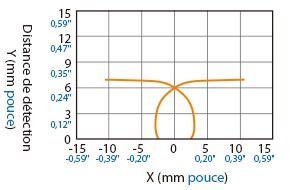 La figure suivante montre la position du point ON quand l’objet détectable standard (spécifié dans les caractéristiques) est déplacé parallèlement au capteur dans le sens de la flèche.