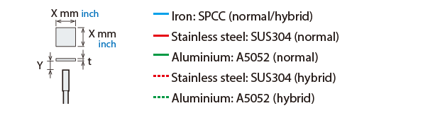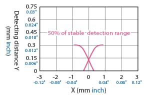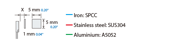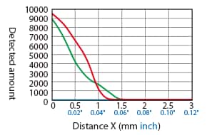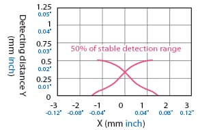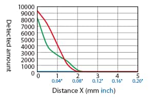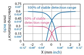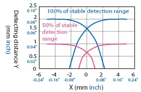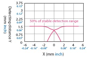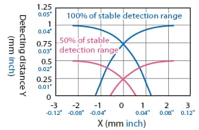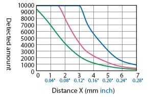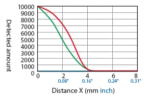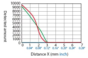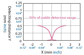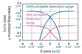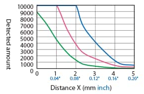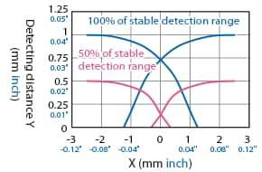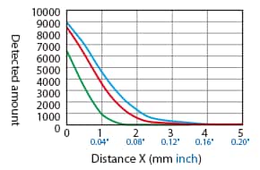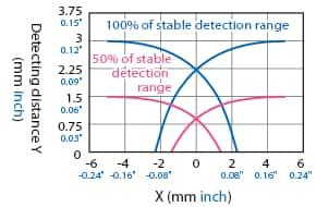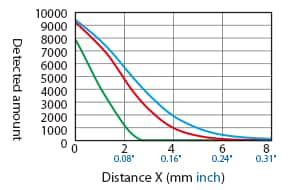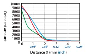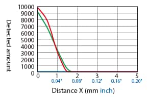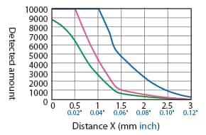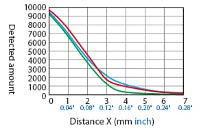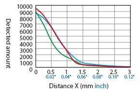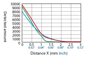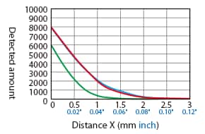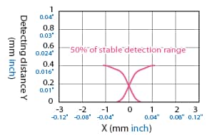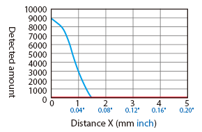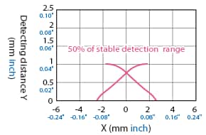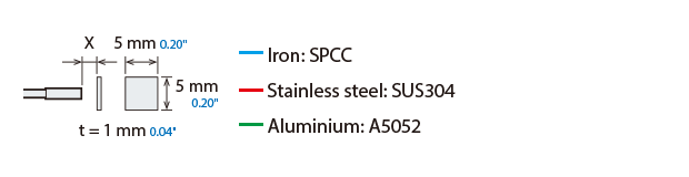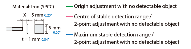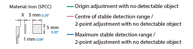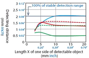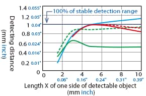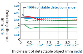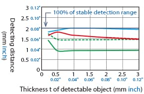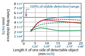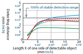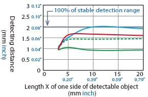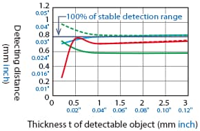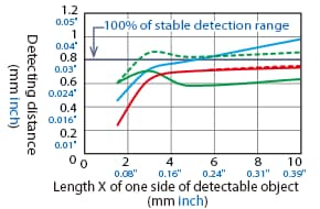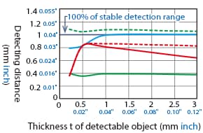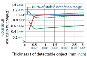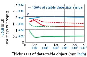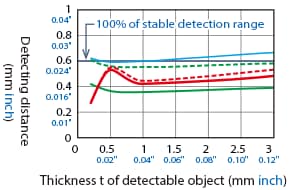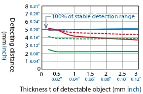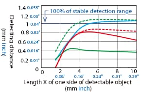 Detectable Object Size: 5 mm × 5 mm 0.20″ × 0.20″, Thickness t = 1 mm 0.04″ (Standard Detectable Object Size), Normal Mode