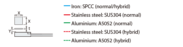 Detectable Object Size: 5 mm × 5 mm 0.20″ × 0.20″, Thickness = t mm