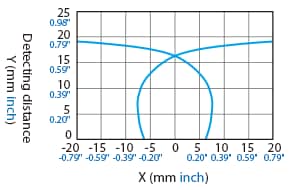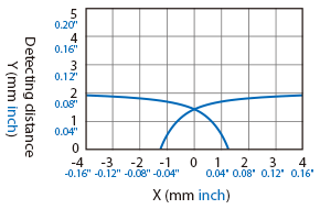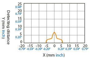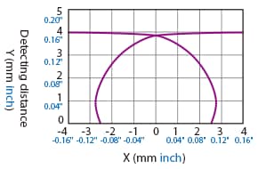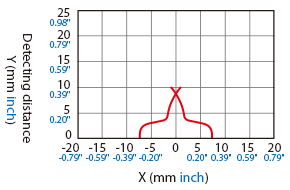 The following shows the position of the ON point when the standard detectable object (specified in the specifications) is moved parallel to the sensor in the direction of the arrow.