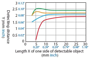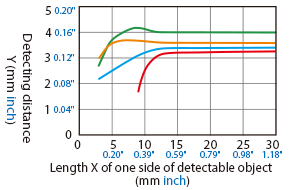 Variation of Detecting Distance According to the Size and Material of the Detectable Object (Typical Example)