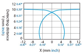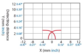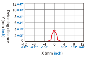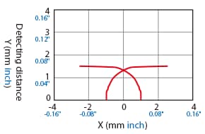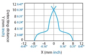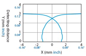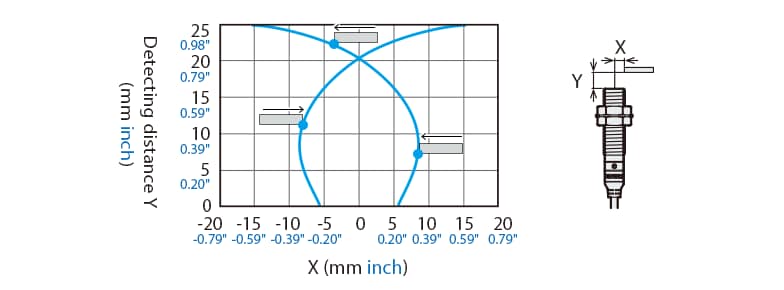 The following shows the position of the ON point when the standard detectable object (specified in the specifications) is moved parallel to the sensor in the direction of the arrow.