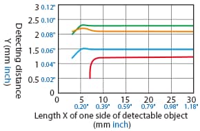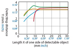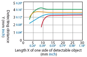 Variation of Detecting Distance According to the Size and Material of the Detectable Object (Typical Example)